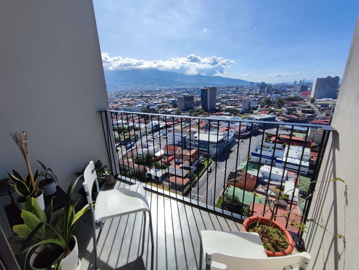 Denna vackra lägenhet ligger på översta våningen i byggnaden med en spektakulär utsikt över staden där du bekvämt kan se på balkongen och bara 400 meter från Metropolitan park i La Sabana. *** Juan Santamaría International Airport (10 miles , 17 minuters normal trafik)