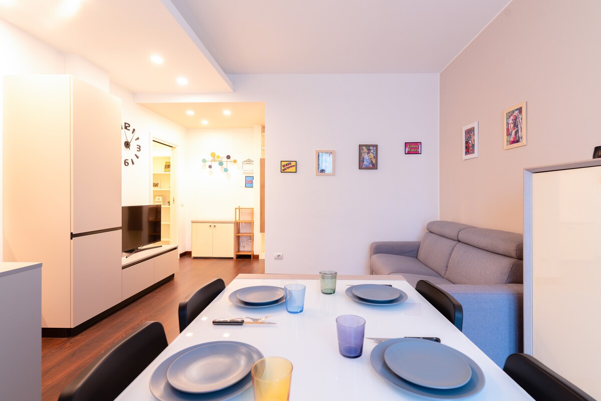 Den moderna, rymliga, ljusa lägenheten ligger i ett strategiskt område i Milano, bland de grönaste i staden, och består av: -1 Vardagsrum med bäddsoffa -1 Kök -1 Badrum med deluxe duschkabin -1 Sovrum 5 minuter från hållplatsen Bonola M1 16 minuter med tunnelbana från Gamla stan 25 minuters promenad från San Siro, för fotbolls- och konsertälskare, så undviker du trafik och parkeringsproblem. 5 minuters promenad från köpcentret med: stormarknad, butiker, barer