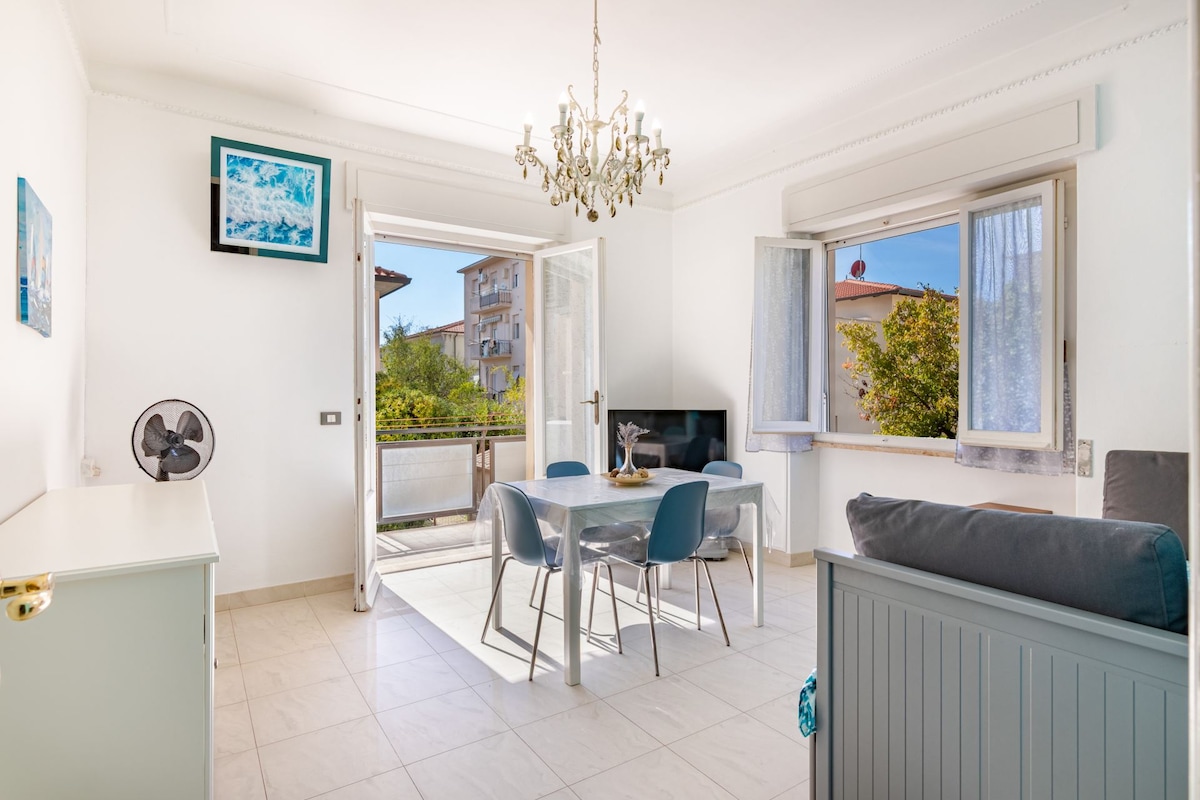 På Via del Capodoglio 9, i det eftertraktade Conchiglia-området, hyr vi en lägenhet på bottenvåningen i en strandvilla. Lägenheten består av ett pentry med vardagsrum, ett sovrum med dubbelsäng, ett andra sovrum, ett badrum med fönster och dusch och en privat innergård. 1 privat parkeringsplats. En grind med direkt tillgång till stranden delas med en annan lägenhet.