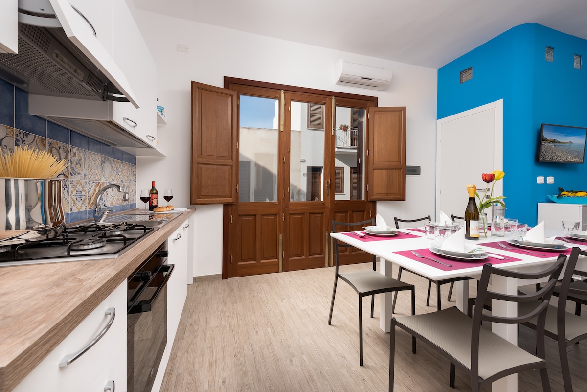 Huset, inredda i en vintage naturlig stil, består av en studiolägenhet med kök och ett badrum med dusch. Den nås av en port med utsikt över en innergård. Lägenheten är ljus, med utsikt över marinan i Favignana med utsikt över slottet i Santa Caterina, och är utrustad med luftkonditionering. Köket har det viktigaste för att förbereda frukost och små måltider.