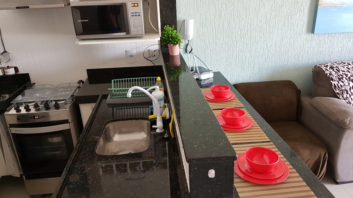 Vårt boende är utformat så att du har mycket komfort och funktionalitet i ditt boende! Lägenhet 401 är en 38 m² lyxig lägenhet med en stor balkong med utsikt över Itajuru-kanalen. Det finns 100 meter från det gastronomiska centrumet med flera restauranger,barer med levande musik och det finns 700 meter 🏖️ av Praia do Forte. Nu med täckt parkering ingår i själva byggnaden.