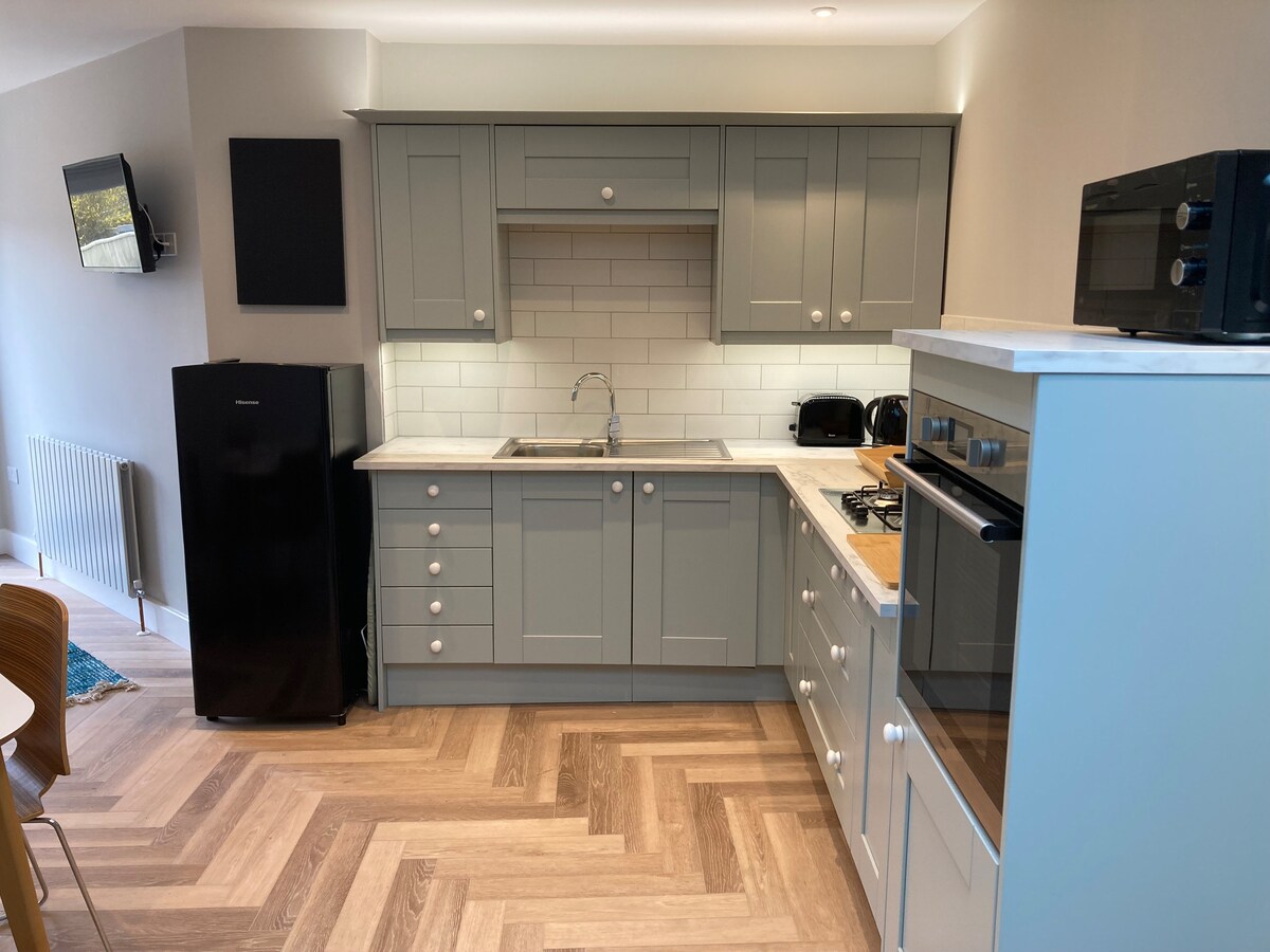 Välkommen till en rymlig och modern men mysig tillflyktsort nära historiska Oxford. Öppen layout, modern inredning och ett lyxigt badrum med dusch. Det utrustade köket har kylskåp, induktionshäll, brödrost och vattenkokare. Koppla av i komfort med full luftkonditionering och koppla av i trädgården sittgrupp. Håll kontakten med WiFi och njut av underhållning med en TV och PlayStation 5. Perfekt för en fridfull resa eller för att utforska Oxfords rika kultur. Boka nu!