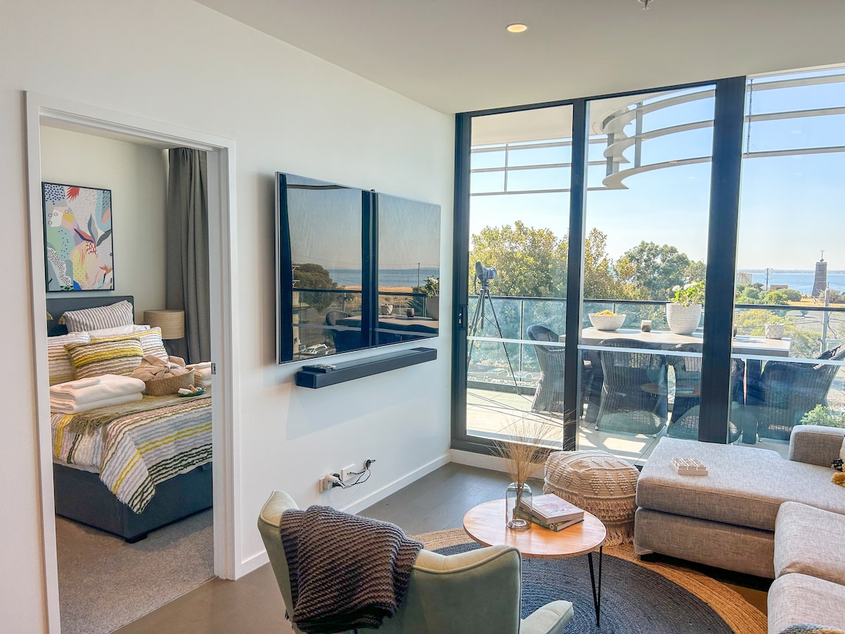 Tyst, arkitektoniskt utformad modern lägenhet professionellt rengjord med Viraclean desinfektionsmedel och linne professionellt tvättat. Pålitligt Telstra Wi-Fi, säker underjordisk parkering med hiss och en nordvägg med utsikt över Docklands. Bara 1,5 kvarter från stranden, nära kaféer, stormarknader och Bay Street restauranger. Enkel spårvagnstillgång till CBD på 5–10 minuter. Perfekt för proffs och längre vistelser.