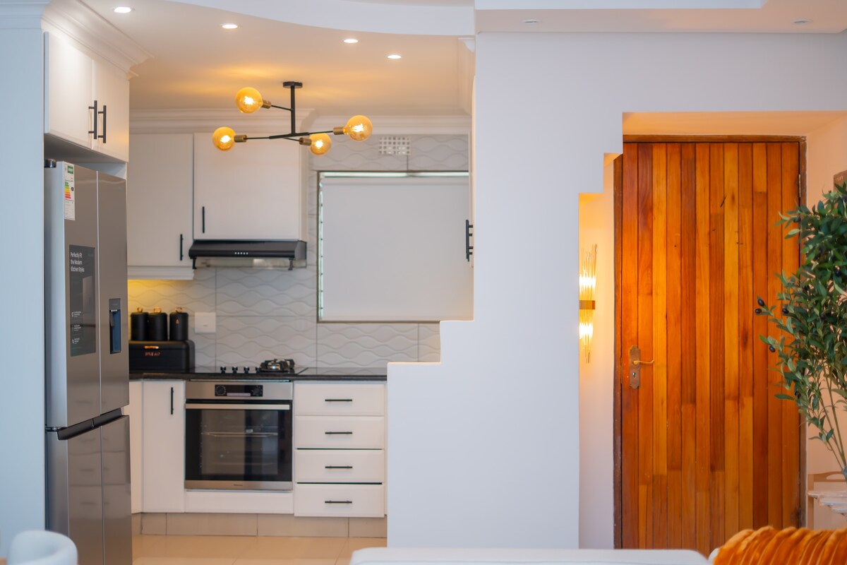 Denna vackra lyxigt möblerade och inredda översta våningen lägenhet i ett säkert och tryggt komplex med 24 timmars säkerhet. Vår lägenhet inkluderar fiberdrivet Wi-Fi, HD-TV, med DStv, Nespresso-kaffemaskin, komplett uppsättning tvättmaskin och torktumlare. Perfekt beläget 1 km från Sandton City Mall & Gautrain. Gångväg till Benmore, Investec och RMB.