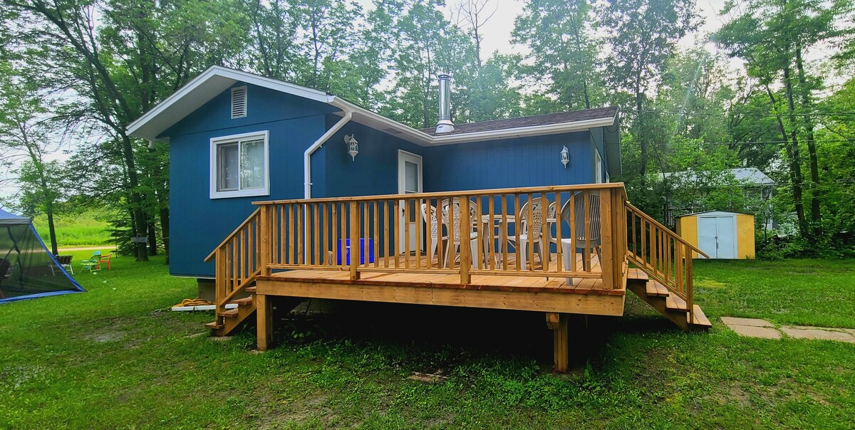 Fyra säsongers strandnära hem beläget på en hektar stor egendom med 300' av vattenfront. 1400'sq hem är fint inredda och välutrustade. 3 stora däckområden och 60 meter brygga med båt lansering tillgång. Gasolgrill, stort eldstadområde. 2 fullt servade husvagnsplatser är också tillgängliga. Njut av simning, båtliv, kajakpaddling, paddleboarding, fiske etc. Golfbana i världsklass, restauranger, livsmedelsbutik/bensin bara några minuter bort. Värdar bor i närheten för din bekvämlighet. 7 dagars uthyrning endast under högsäsong.