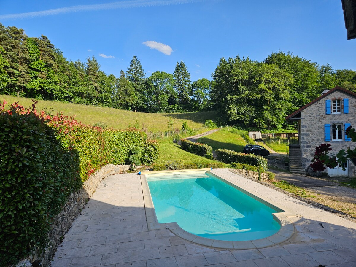 Ett mysigt litet bo I LE CANTAL, 10 minuter från Aurillac...Välkommen till Le Clos du Buisson! Lugnet och lugnet på platsen omsluter dig i en välbevarad natur av vår 4 hektar stora LPO tillflyktsort. Inredningskomfort, en inredning full av charm, ett vackert lantkök öppet till vardagsrummet med sin cantou...en enkel lycka med charmen i förr. Lägg ner dina väskor, njut av poolen, koppla av vid elden och fånga julens sötma.....