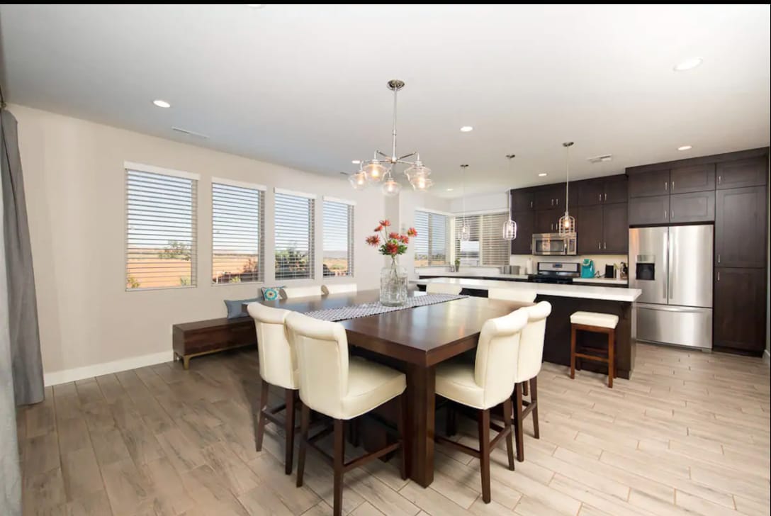 Luxury two-story home with 3 bedrooms & 2.5 baths. Contemporary fully equipped kitchen. Two family rooms, fireplace, 2 car garage with 50 amp electric vehicle charge port. Outdoor patio for grilling, dining under the cafe lights or roasting s'mores over the fire table. Hiking, biking, horseback, ATV trails and the Tuacahn Amphitheater are all minutes away, and Sand Hollow Aquatics Center is just across the street! Pool and pickle ball courts are available to all guests. Come enjoy today!