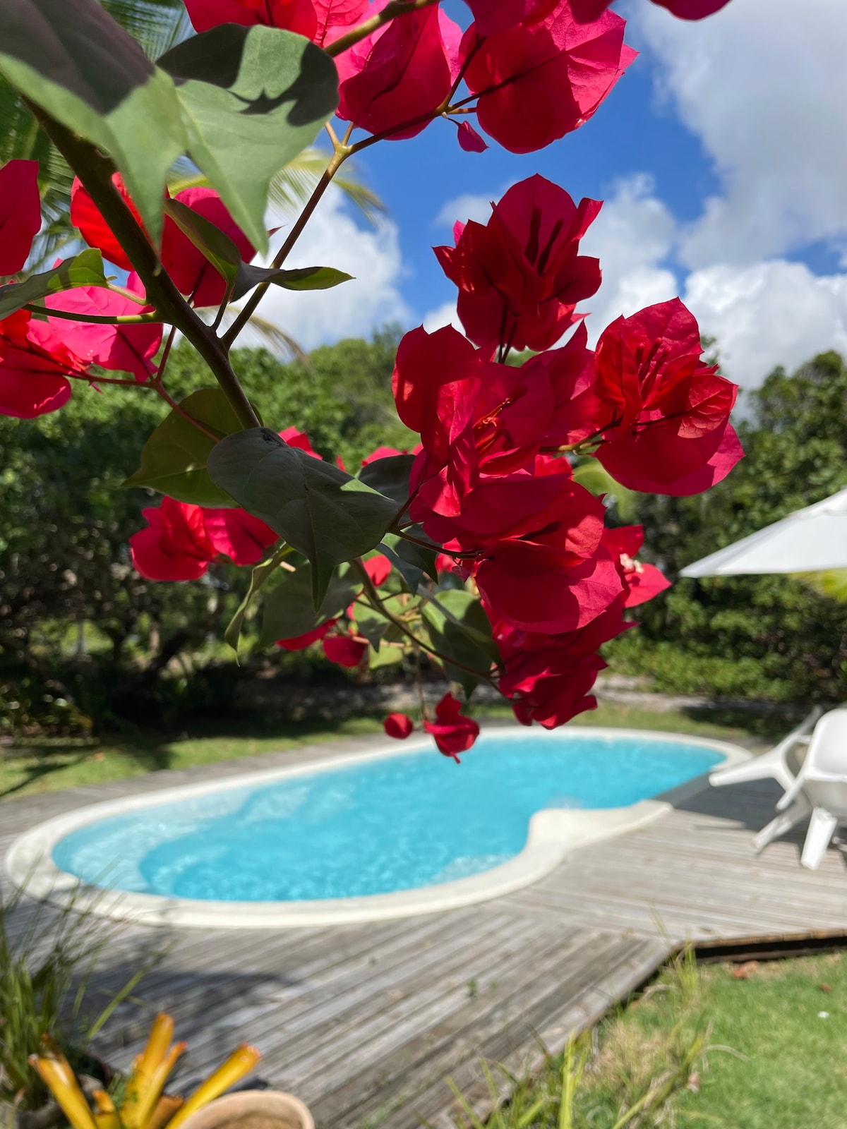 Vacker exotisk villa i skogen för upp till 6/7 personer. Att bo i detta hus innebär att ta ett dopp i den vackra Atlanten som omger det. En stor dubbel balkong med två hängmattor och ett mycket stort kök erbjuder möjligheten att praktiskt taget bo utomhus. Vår vaktmästare tar hand om trädgården och tar hand om de kvinnliga herdehundarna, som är lydiga och kärleksfulla och väl vana vid gästernas närvaro. Hundarna bor i ett inhägnat område där vi har det stora huset som vi passerar för att gå till stranden