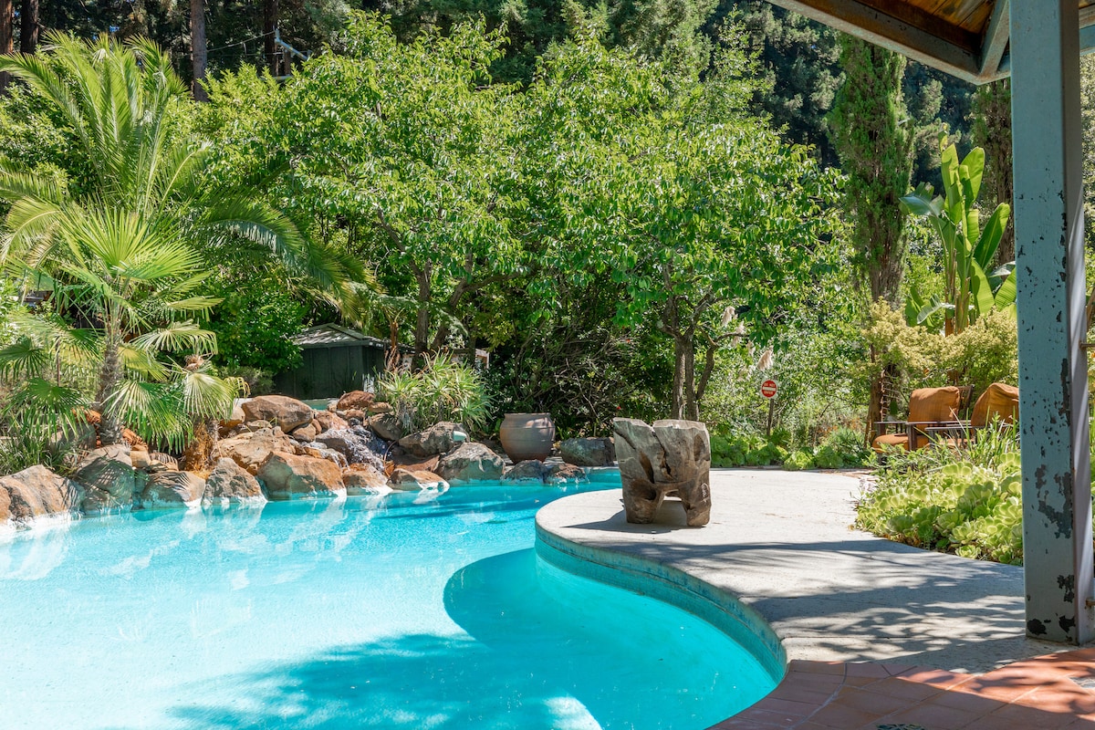 Tillstånd 231266 – I Santa Cruz-bergen ligger denna fridfulla oas, rustik med moderna detaljer och en fantastisk pool (den övre poolen och huvudpoolen är inte uppvärmda). Omfamna dig själv med den frodiga tropiska miljön och de underbara redwood-lundarna i denna förtrollande, unika villa. Med avståndet mellan dig och närmaste granne är det perfekt för familjer och naturentusiaster som söker en föryngrande tillflyktsort. Din redwood-utflykt väntar!