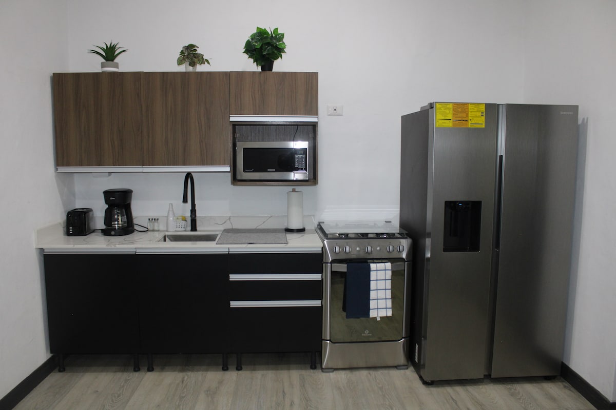 Njut av en elegant upplevelse i detta boende, gjort för att du ska kunna njuta med familj eller vänner eller som ett par, det är ett utrymme tänkt för din komfort. lägenheten ligger på tredje våningen, vilket innebär att du måste gå uppför trappan eftersom vi inte har någon hiss. Vi har privat parkering, om du har ett fordon, är det 100 % säkert inom våra anläggningar.