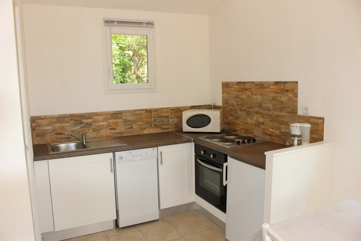 charmig minivilla helt renoverad i lugn och nära till havet ligger på vägen till pinarellu bara 900 meter från viken , är det inom en egendom på 5000M2 skog och fylld med grönska som du kan njuta av tystnaden i denna vackra stuga med sin trädgård, grill och stor terrass , har interiören två sovrum , ett badrum och ett vardagsrum utrustat med en cabriolet soffa alla luftkonditionerade. möjlighet att hyra 4x4.
