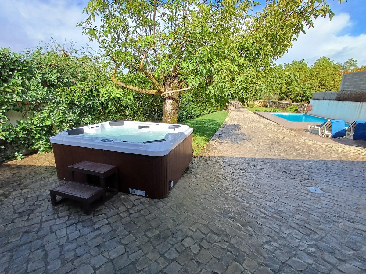 Välkomna till vårt rustikt eleganta semesterhus i boutique! Beläget i den idylliska miljön i pittoreska Tomar, erbjuder vår fastighet hisnande utsikt. Du kommer att se ut över olivodlingen, den historiska Convento de Cristo, Tomar och byn Pedreira. Denna vistelse ligger längst ner i vårt hus och har en egen ingång. Du kan använda den gemensamma trädgården, som bland annat har en oändlighetspool, en pétanque-bana och olika sittplatser. Vi ses snart på Casa Anjema!