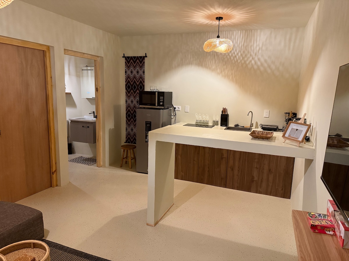 Detta unika 3D-tryckta betonghus har en privat grotta med direkt tillgång till havet. Gå från bungalowen in i grottan och dyka ner i det kristallklara karibiska vattnet. Se delfiner, tonfisk och livliga koraller medan du snorklar. Vi tillhandahåller utrustning, kylkanna, supbrädor gratis. Njut av en cocktail i jacuzzin vid klippan med fantastisk havsutsikt och de bästa solnedgångarna på ön. Boendet har två privata, spegelbildsbungalower. Kontakta oss för att hyra båda, för att ha allt exklusivt.