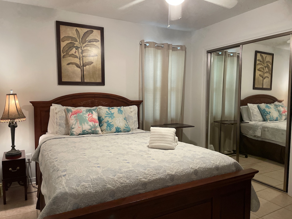 Utforska centrala Pensacola och besök de vita sandstränderna i världsklass i Pensacola från denna mysiga vagnshusbostad som ligger inom gångavstånd från restauranger, shopping, museer och nattliv. Stengolv, gott om naturligt ljus och högt i tak. Slappna på en privat balkong medan du smuttar på ditt morgonkaffe efter en vilsam natts sömn i en bekväm säng med högkvalitativa sängkläder. HD-TV och en trådlös JBL-högtalare för att spela dina låtar. Fullt utrustat kök med allt du behöver för att laga en måltid. Gott om garderobsutrymme för alla dina saker och tvättmaskin och torktumlare i full storlek.