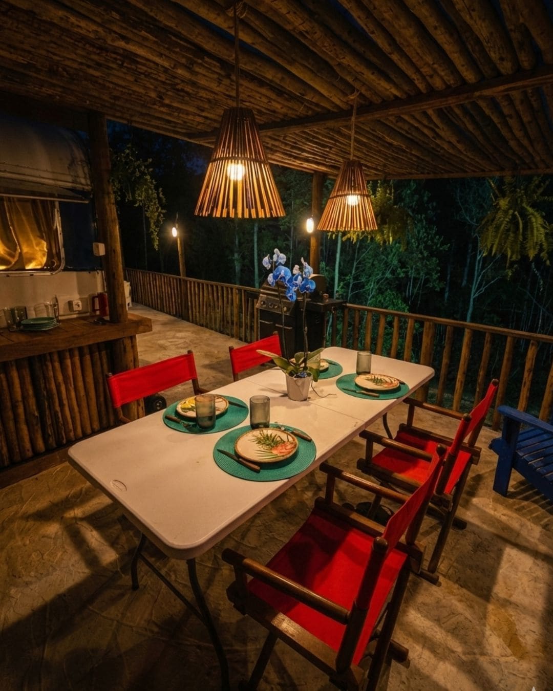 Viva uma experiência única em meio à natureza! Charmoso trailer estilo americano a 20 min do centro de Santa Teresa, perfeito para relaxar e curtir momentos especiais. Estrutura do trailer 1 cama de casal 1 sofá-cama Mesa que vira cama Banheiro Wi-Fi Área externa Cozinha completa ao ar livre Churrasqueira americana Hidromassagem externa Experiências Lago com pedalinho e stand up paddle Mirante com vista da natureza