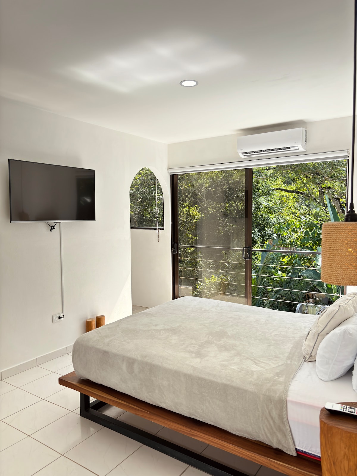 Beautiful studio apartment in a safe and quiet neighborhood surrounded by nature, yet only a 5 minute walk to the beautiful beaches of Santa Teresa. All the conveniences of town with great shops and restaurants nearby. The apartment includes, air conditioning, fast fiber optic wifi, backup Starlink, hot water shower, smart tv, fully equipped kitchen and secure on-site parking. There is also a large, shared saltwater pool for all guests to enjoy. Adults only (18+), not suitable for children.