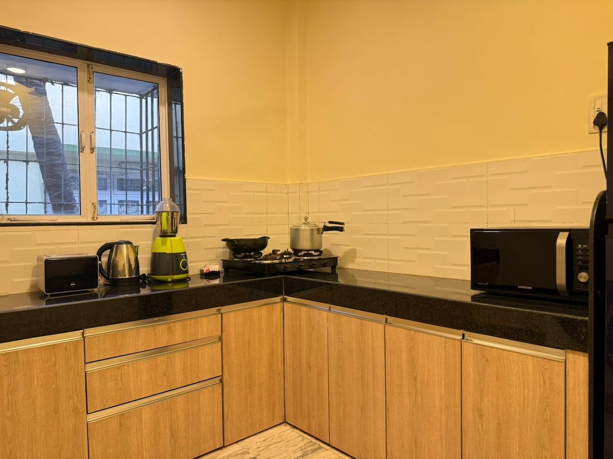 Vakna upp till rapsodi av kvittrande fåglar, mild havsbris och magnifik soluppgång omgiven av frodig grönska. Silver BEACH -5 minuters promenad Aksa STRAND-15 minuters bilresa Smart-TV, luftkonditionering, Wi-Fi, ett badkar. Tillbringa mysiga eftermiddagar på balkongen med en bok och en kopp kaffe, mitt i grönskan. Promenera på stranden, utforska vackra anlagda trädgårdar, pool och pittoreskt café i lyxiga lägenhetskomplexet, beläget i lugnt och tropiskt område på Madh Island Zomato Swiggy & Blinkit levererar