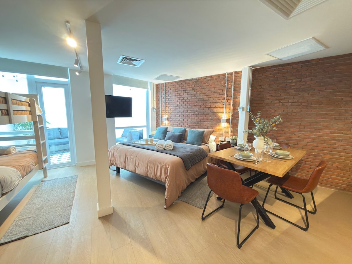 HOM | Moderno Studio 2PAX con Terraza en Santiago