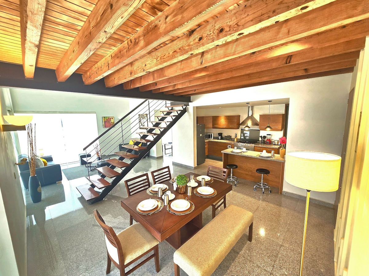 Koppla av och koppla av i detta mysiga privata loft i Querétaro! Detta utrymme utformades för att du ska kunna njuta av komfort, vila och fullständig integritet. Med en modern design och massor av naturligt ljus är det perfekt för en lugn och elegant vistelse. Beläget på övervåningen i ett säkert gated community med övervakning och säkerhetsvakter, bara 15 minuter från det historiska centrum med bil. Du får hela boendet för dig själv!
