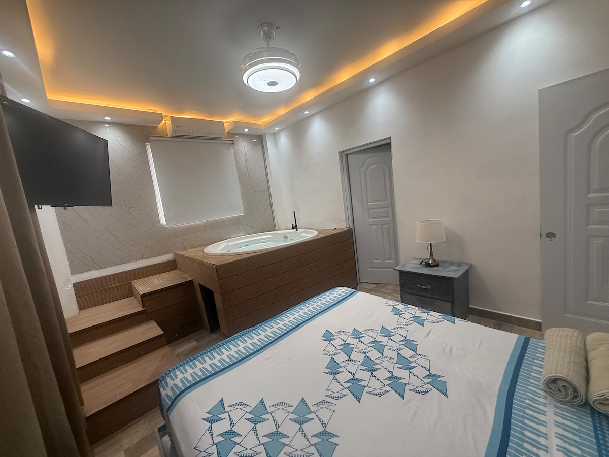 Beläget i hjärtat av Piantini, i centrum av Santo Domingo, är hela lägenheten utrustad med alla bekvämligheter; varje detalj är utformad för att göra din vistelse bekväm och avkopplande, inklusive tillgängligt Wi-Fi, Alexa, kaffemaskin, dricksvatten och is, vattenkokare, mörkläggningsgardiner, egyptiska bomullslakan, hårtork/plattång, bland många andra egenskaper. I varje rum hittar du en lyxig och komplett uppsättning bekvämligheter.