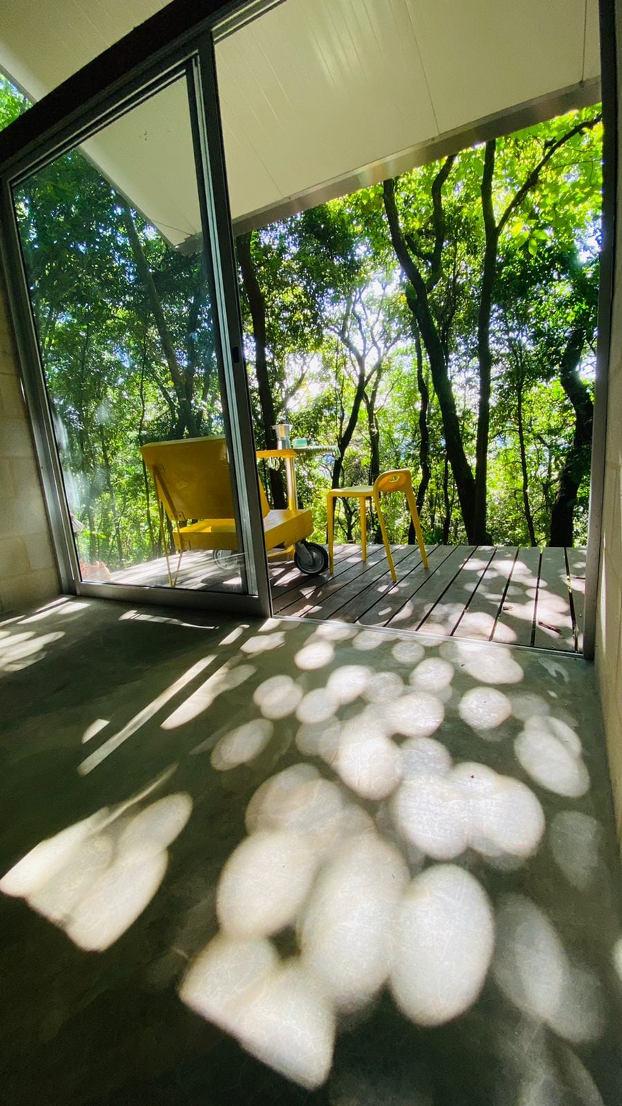 Välkommen till ARUANDA Tiny House ARUANDA betyder: Himlen där orixás bor. Detta är en upplevelse för par som älskar och respekterar skogen. Här kommer du att få kontakt med naturens lugn och har möjlighet att njuta av livet på Praia do Forte, som ligger 15 minuter bort. Aruanda är modernt! Vi har wifi och luftkonditionering och vårt utomhusområde har en matplats, en vacker altan där du kan utöva yoga eller dricka ett glas vin och en liten strand vid lagunen.