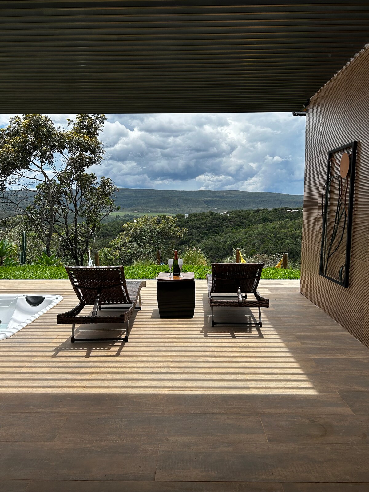 Med en underbar utsikt över dalen och bergen och ett område för kontemplation med privat bubbelpool och gemensam pool, Cabana Pouso Alto inspirerades av den typiska arkitekturen i Chapada dos Veadeiros-regionen. Byggd med ekologiska adobe-tegelväggar, struktur av återplanterad eukalyptus och golv av bränt cement, ger den sina besökare den verkliga upplevelsen av att leva och känna livet som det är i mitten av cerrado. Delad pool