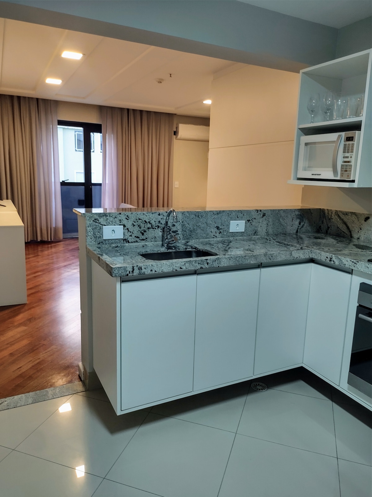 Mycket rymlig och fullt utrustad lägenhet på 56 m² uppdelad i 3 miljöer för vila, arbete och laser! Beläget i Hotel Summit Flat Service som har en restaurang på terrassen från den berömda franchisen Pink Elephent där du kommer att ha den bästa 360° panoramautsikten över staden. I de gemensamma utrymmena finns flera inredda lounger, kaffeservering och gym med toppmodern utrustning, samt en vacker panoramahiss Med integritet och säkerhet med direkt tillgång till våningen via garaget i källaren