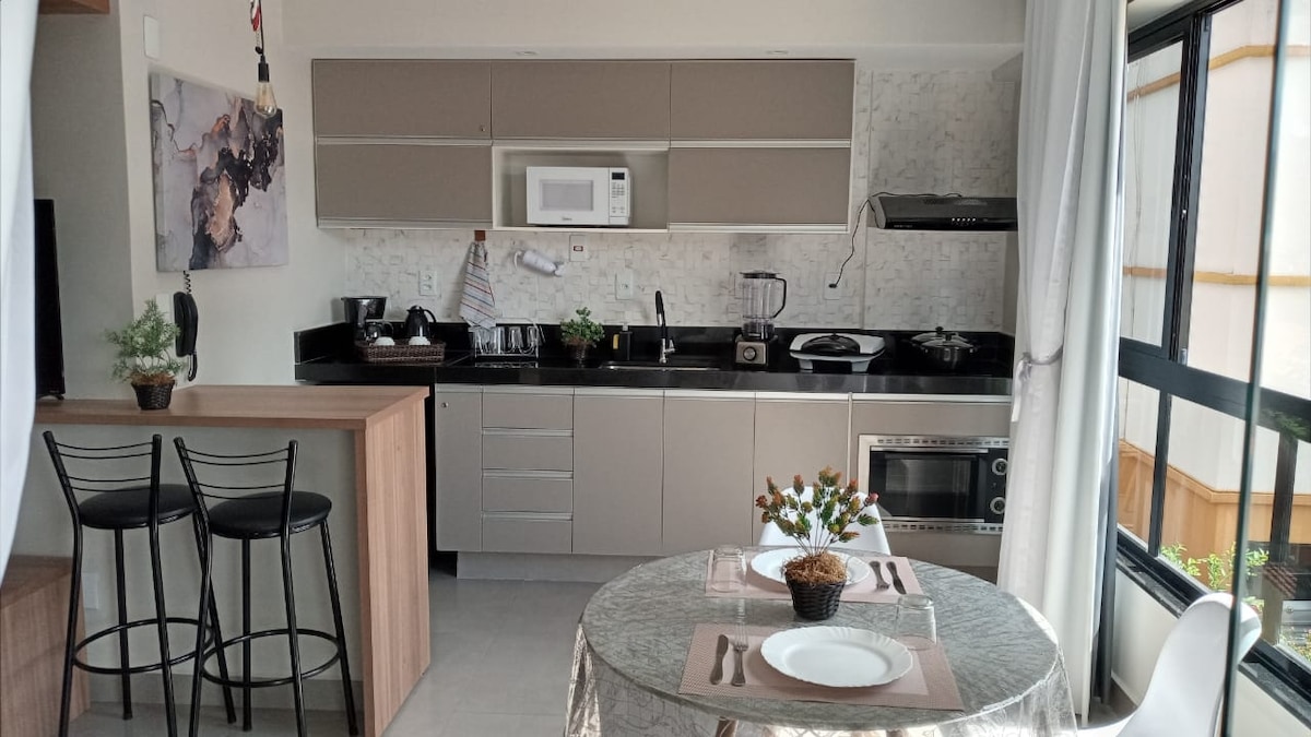 Njut av en oförglömlig vistelse i vår moderna och mysiga lägenhet, belägen i São Lourenço – en av de mest charmiga städerna i södra Minas! Nära Parque das Águas (650 meter), restauranger, kaféer och butiker. Utrymmet har: ✨ Balkong med utsikt för att koppla av och njuta av landskapet ✨ Superbekväm queen-säng med sänglinne och handdukar tillgängliga Fullt utrustat ✨ kök med redskap. ✨ Luftkonditionering och höghastighets Wi-Fi, plus Netflix.