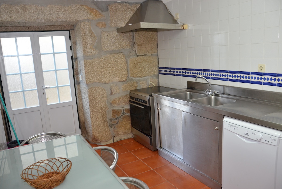 Koppla av i detta lugna och eleganta utrymme beläget i byn. Huset tillhörde min mormor Emilia som aldrig avstod från att använda en hårduk som klädesplagg, du hittar en i varje rum i huset. Renoveringen gjordes mestadels av oss och det var ett projekt som tog ungefär 4 år, det finns mycket passion i allt som gjordes... om du är nyfiken, se förvandlingen _emily_s_house Byn är mycket lugn, den har en flod med fantastiska landskap och stigar, vi väntar på dig...
