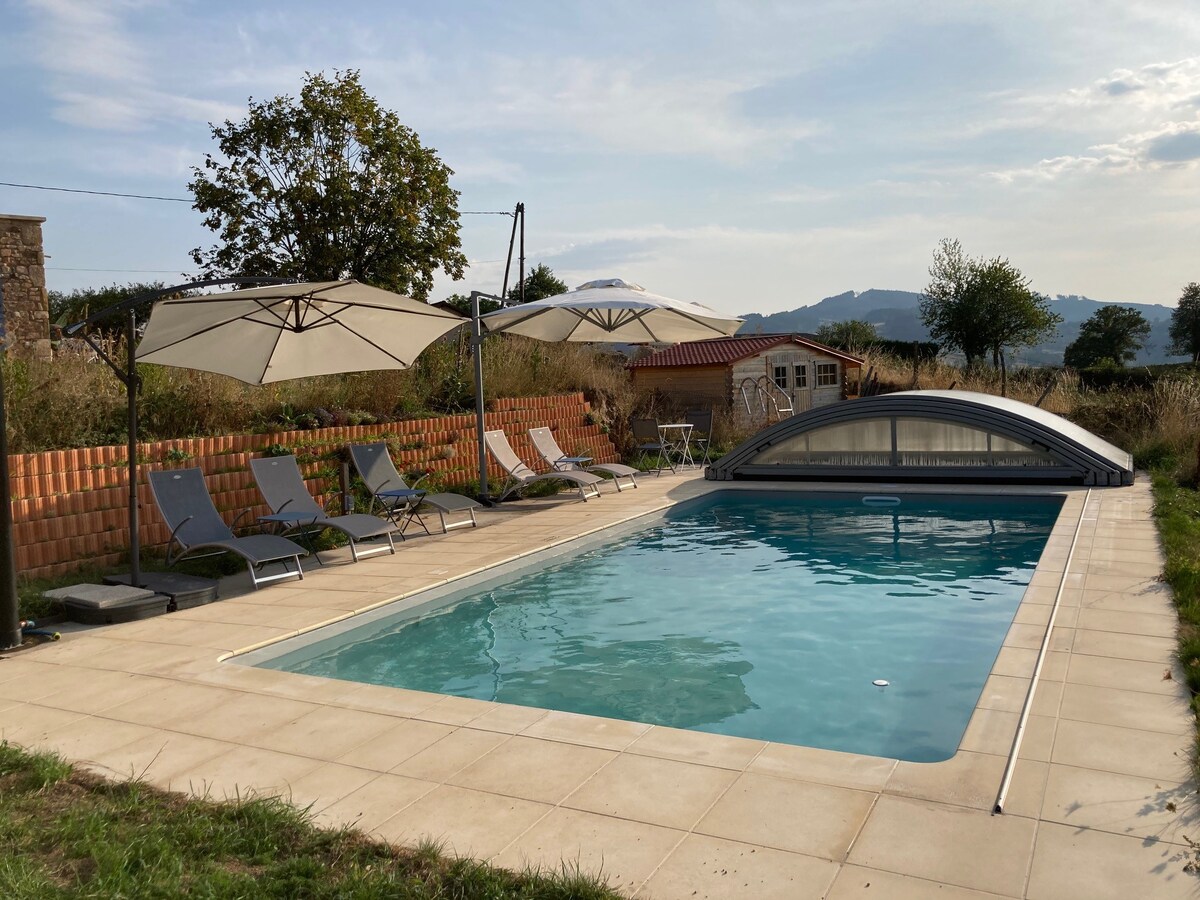 I korsningen av Clunisois, Charollais och Beaujolais, i hjärtat av landsbygden, välkomnar denna gamla renoverade lada vandrare, mountainbike-entusiaster, samt historia-, gastronomi- och vinälskare. Perfekt för att träffas med vänner eller familj i detta gemytliga hus och njuta av lugnet och skönheten på platsen i all enkelhet. Lakan (sängarna bäddade vid ankomsten), handdukar och städning: 180 €