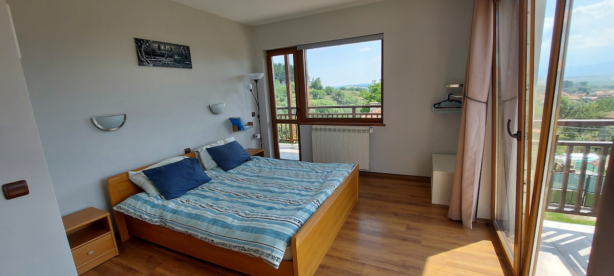 Ny,modern lägenhet med exelent Panoramautsikt, 2 italiensk lädersoffa, fullt utrustat kök,badstuga,bekväm amerikansk dubbelsäng, gratis Wi-Fi,satellit LSD TV. Nära till centrum. Luftkonditionering,mikrovågsugn,tvätt- och torkmaskin , stort kylskåp. Söt balkong med utsikt.
