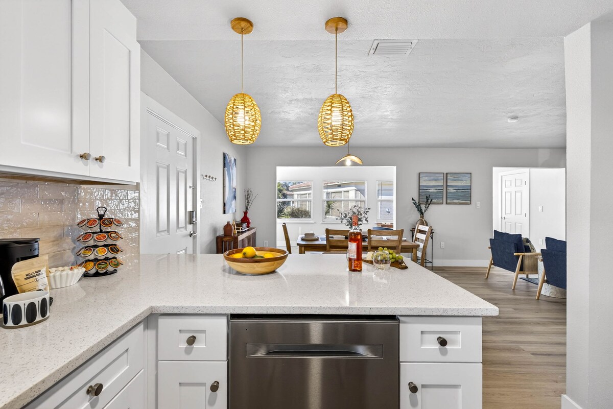 Upplev Salt & Sol, en raffinerad kusthelgedom utformad för enkel elegans. Med en sällsynt planlösning på bottenvåningen med stegfri entré är detta boende perfekt placerat inom gångavstånd till boutiquebutikerna och den lokala maten på Key. Det balanserar en avancerad estetik med avsiktliga, gästcentrerade bekvämligheter som är skräddarsydda för en sofistikerad strandlivsstil. - Dubbla King Suites: Två primära sovrum med king size-sängar och premium sängkläder för en vilsam, förhöjd Salt & Sol