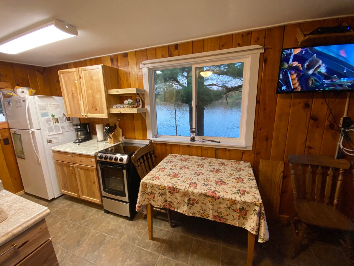 Omgiven av träd, belägen precis vid Lake Hayward ligger denna charmiga och mysiga stuga i ett litet stugsamhälle mindre än en halv mil från centrala Hayward. Sätt din kanot till sjöss bara några steg från stugans ingång, cykla in till stan för lunch, eller vandra eller åka skidor på de närliggande lederna, denna stuga ligger på det perfekta läget! Detta är en stuga i studiostorlek med en dubbelsäng, soffa (med utdragbar dubbelmadrass), badrum, pentry med kylskåp, mikrovågsugn, Keurig kaffebryggare och utomhusgrill.