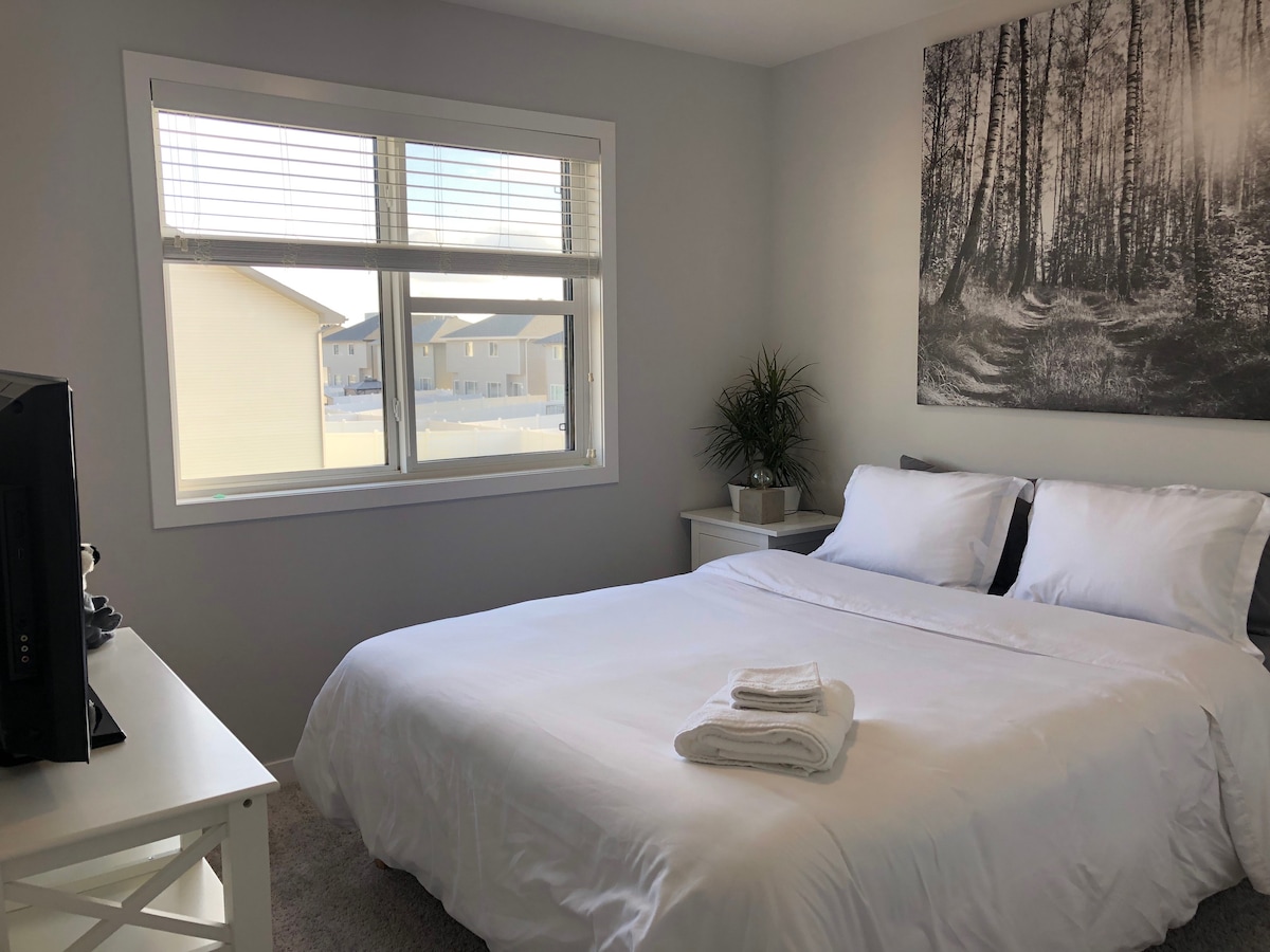 2 sovrum privat svit halv kvarter från Pasqua sjukhus och Allan Blair Cancer klinik. Ett kvarter från Mosaic Place, Evraz Place och Exibition Grounds. Byggd 2015, denna nya, rena, 1100 fot nedre halva duplex har allt du behöver inklusive egen ingång, tvätt, värme och central luft, komplett kök, 65 "Smart TV och WIFI. Långtidsboende (vuxet par) bor i sviten på huvudvåningen. Keurig kaffe tillhandahålls för gäster.