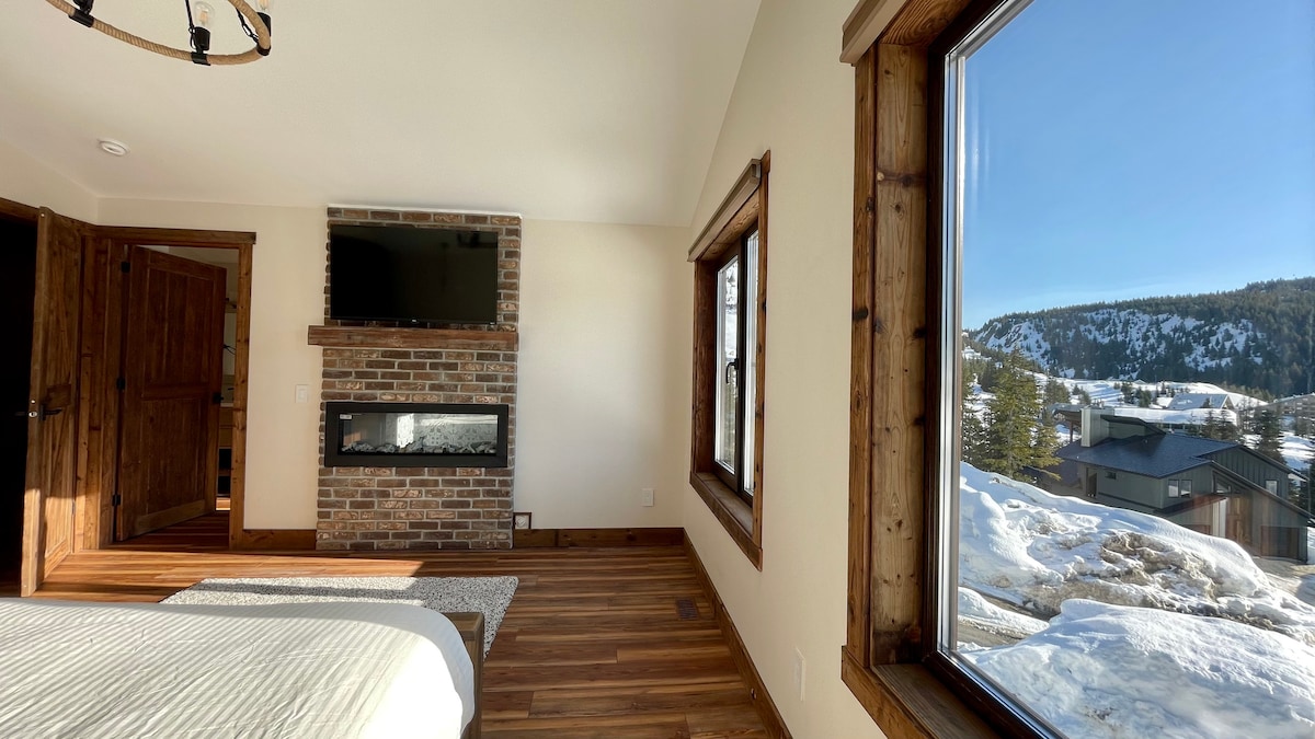 Mysig lägenhet med skidtillgång perfekt för familjer! Ett sovrum plus loft rymmer 4 bekvämt (queensize-säng + 2 enkelsängar). Njut av utsikt över bergen, grill på uteplatsen, gratis WiFi, 2 Smart TV med Netflix, Disney+, 50 i 1 spelsystem och en elektrisk öppen spis. Steg från skidbacken, vandring, cykling, pub och restaurang. Koppla av i den året runt bubbelpoolen och bastun eller sommarpoolen — din perfekta familjebergsresa! Om du har en annan familj som ansluter, leta efter vår andra annons med Lockout Loft!