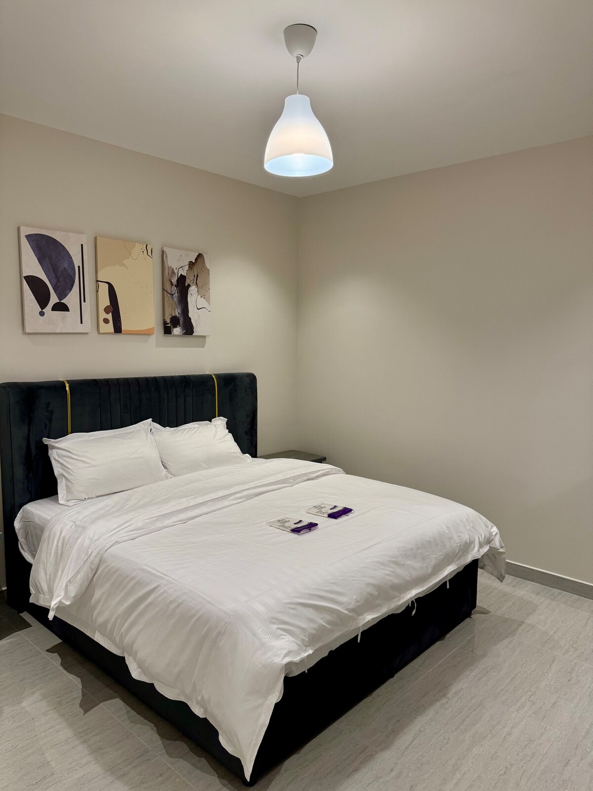 Denna rena och bekväma lägenhet är perfekt för par, ensamma resenärer eller affärsresenärer som letar efter en ren och lugn vistelse. Boendet är utformat för komfort och är utrustat med en bekväm Bella-soffa från Mutlaq Furniture, ett snabbt Wi-Fi-nätverk, en smart-TV och en Nespresso-kaffebryggare. Gästens tillgång Enkel åtkomst till lägenheten på övervåningen med ett digitalt dörrlås Annat att notera Detta är en bostadsbyggnad och ett lugnt område. Var uppmärksam på ljudnivåerna när du anländer och lämnar. Inga evenemang eller fester är tillåtna alls.