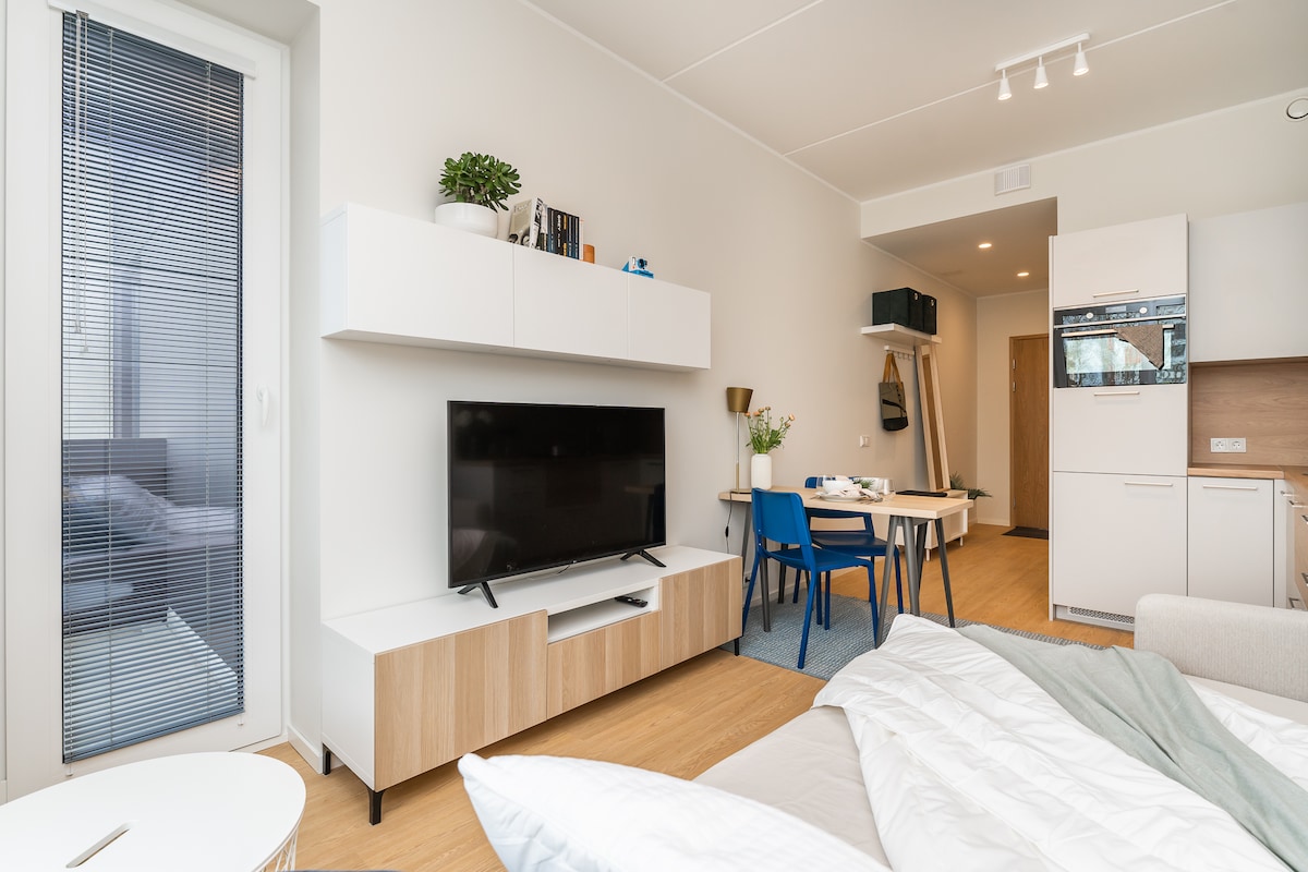 Modern lägenhet nära Tallinns centrum! Njut av en lugn vistelse i vår moderna, tysta lägenhet med enkel tillgång till centrum. Beläget i ett säkert grannskap, är det perfekt för arbete eller avkoppling. Lägenheten har ett mysigt sovrum, ljust vardagsrum, fullt utrustat kök, höghastighets Wi-Fi och gratis inhägnad parkering. Bara 15–20 minuter med bil eller 25 minuter med bil i närheten (2 minuter med promenad, buss nr 24) kollektivtrafik till Tallinns gamla stad, det är idealiskt för att utforska eller koppla av i komfort!