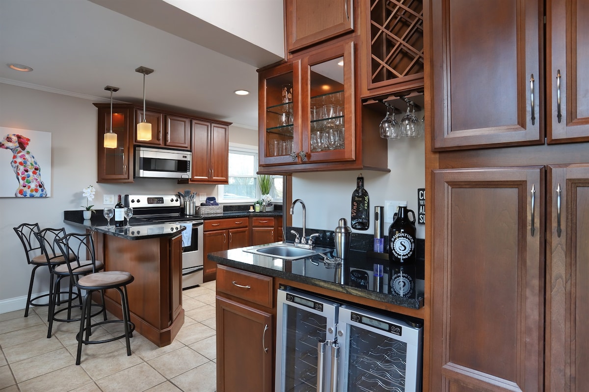Vacker, välutrustad svit på övervåningen i ett nybyggt boende i ett avskilt grannskap. Egen ingång/trappa tar dig till din gästsvit som har en kokvrå med matplats/vardagsrum. Boendet ligger bara några minuter från centrala Saugatuck (även känt som Michigans konstkust), prisbelönta stränder vid Lake Michigan, boutiquebutiker, ett antikvariat, bryggerier, en cykelväg, Performing Arts Center, lokaler för livemusik, vingårdar, State Park, restauranger och mycket mer! Låt min svit bli ditt andra hem!