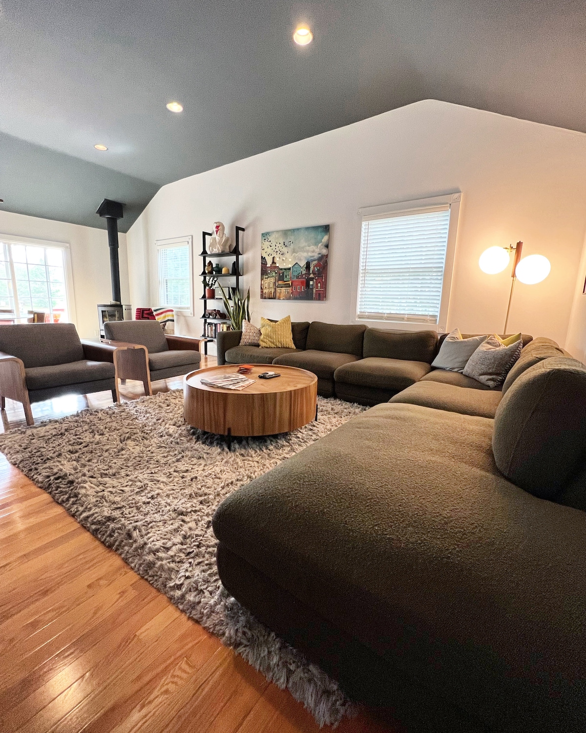 Denna moderna semesteroas från mitten av århundradet är ett välutrustat boende med 3 sovrum. Koppla av och njut av lugnet i en gigantisk, trädtäckt trädgård. Eller ta den korta 15 minuters promenaden (eller cykla) till Michigansjöns strand vid Douglas Village Beach. Saugatucks världsberömda Oval Beach ligger bara två miles bort. Har du slappnat av? Området har allt du behöver – golf, fiske, sanddynsridning, restauranger, konstgallerier, vingårdar, bryggerier, ciderhus, shopping och mycket mer, allt inom 5 miles.