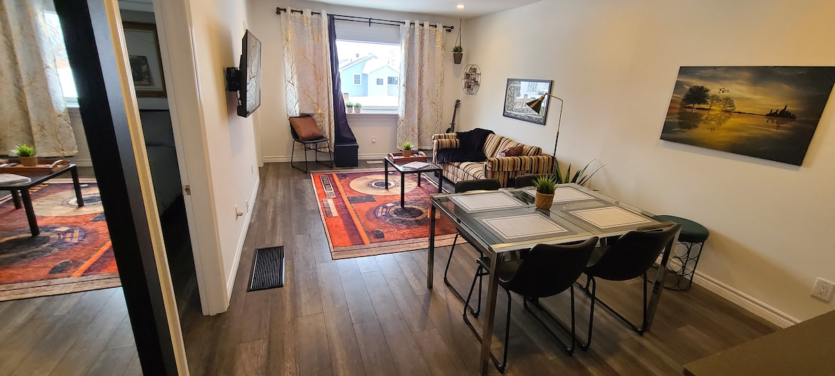 Välkomnande och rymlig 1-rumslägenhet har allt du behöver för din Sault Ste Marie resa. Det är en idealisk bas för att utforska Sault Ste Marie. - BRA centralt läge, kort bilresa eller promenad till mataffär, restauranger och YMCA - Fullt utrustat kök - Fräscha sängkläder och handdukar ingår - Höghastighets-WIFI - Tvättmaskin/torktumlare på plats, tvättmedel och torktumlare ingår - Flexibel självincheckning - Gratis parkering på uppfart