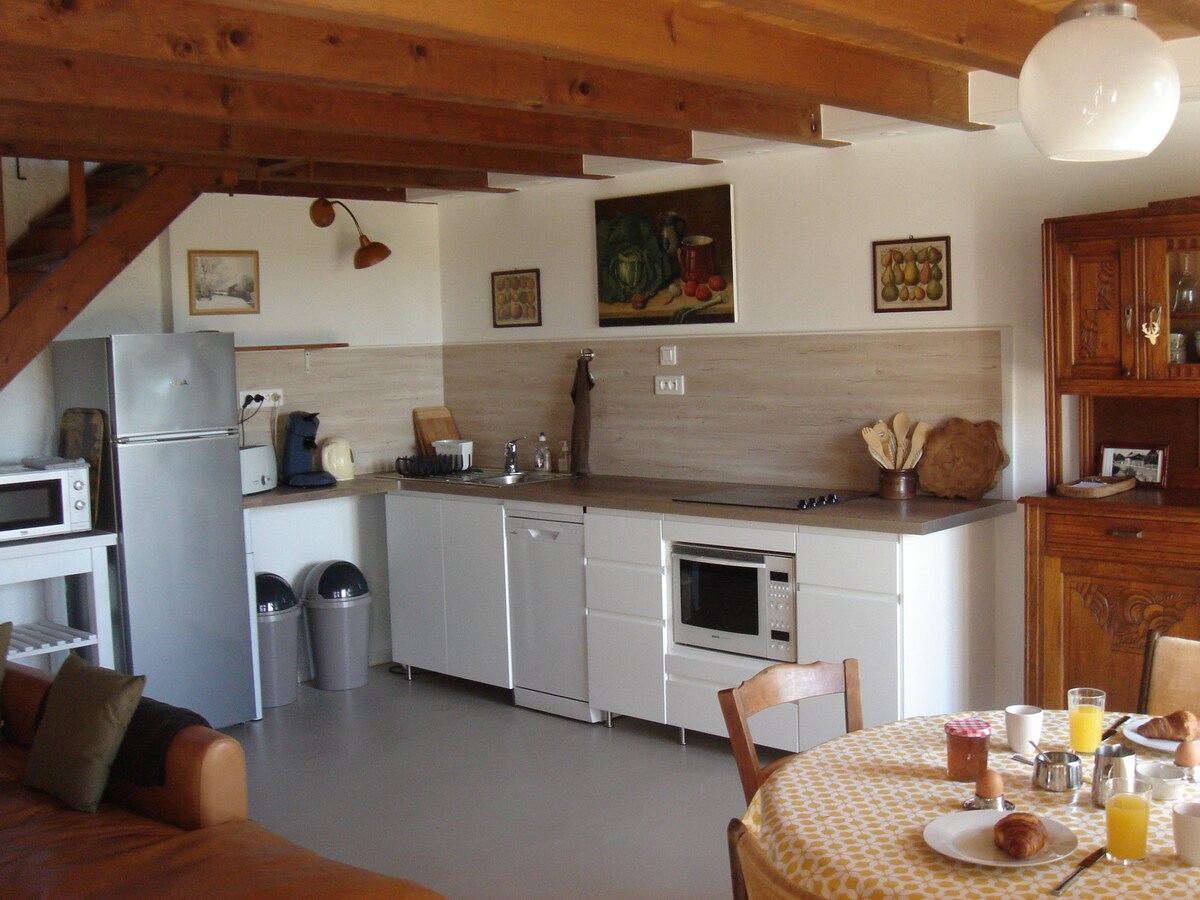 Kom och ladda om i en ganska oberoende ateljé i ett bostadshus, på landet, nära apornas dal, grönsakslabbyrinten och Gamla cormenier. Bondgårdsmarknader, många promenader... Njut av trädgården, lugn och ro. Kök utrustat med spis, ugn, vattenkokare, kaffebryggare. 1 dubbelsäng plus bz soffa ( i samma rum). Trädgårdslounge.