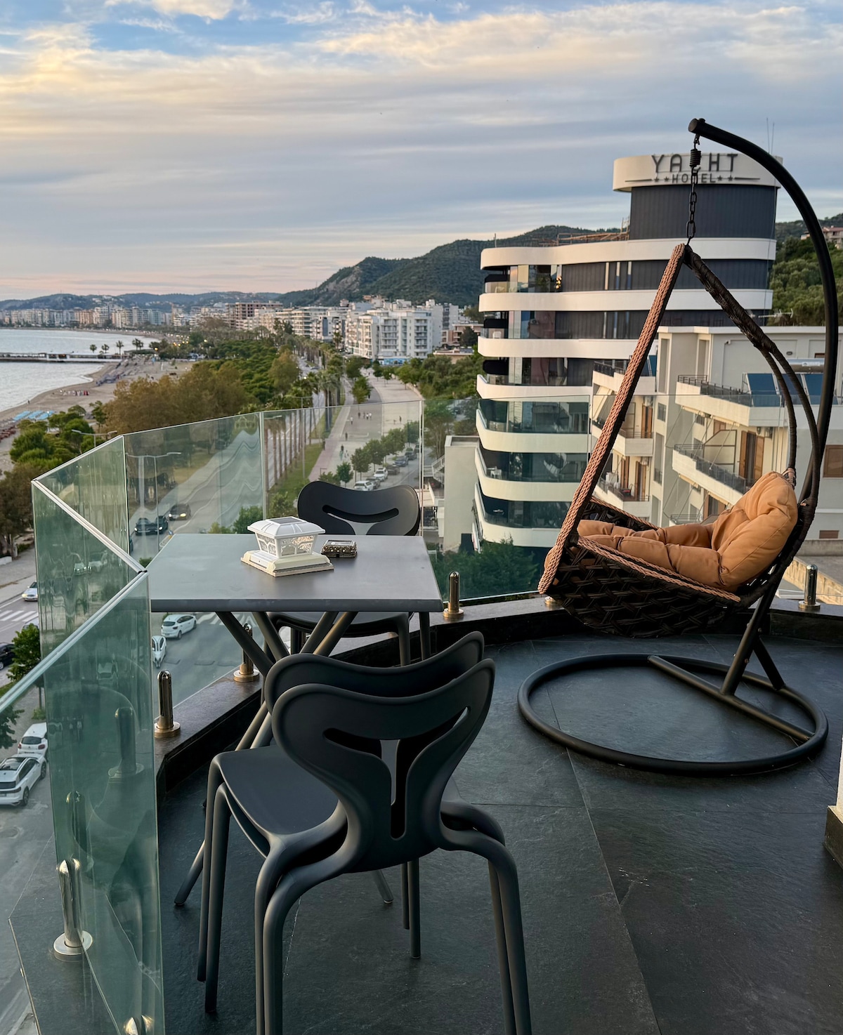 Bo med stil i denna ljusa och luftiga lägenhet, där stranden ligger bara 50 meter bort! Du kommer att ha en fantastisk havsutsikt, en privat balkong, perfekt för en familj. Om du söker efter en stor lägenhet i Vlora med en fantastisk utsikt & läge, så leta inte längre.Lägenheten har en stor veranda där du kan njuta av en underbar utsikt och känna den friska luften.Det har allt en familj behöver.Tveka inte att boka för att lära känna skönheterna i Vlora. Att resa är att leva - H.C. Andersen