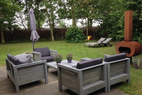 Grevelingen semester, bastu, trädgård, hundar, öppen spis