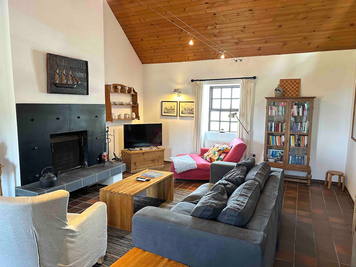 En 200 år gammal kyrkohall, omvandlad till ett unikt rymligt och elegant radhus, som rymmer 4 gäster i komfort. Terrakottagolv genomgående med golvvärme och en fastbränsle spis. Den öppna planlösningen består av ett fullt utrustat kök och ett vardagsrum/matplats i dubbelhöjd. Sovrummet har en dubbelsäng (200 cm x 150 cm) och eget badrum med dusch. Det andra sovrummet är en rymlig mezzanin med två enkelsängar. Denna mezzanin har utsikt över det öppna vardagsrummet.