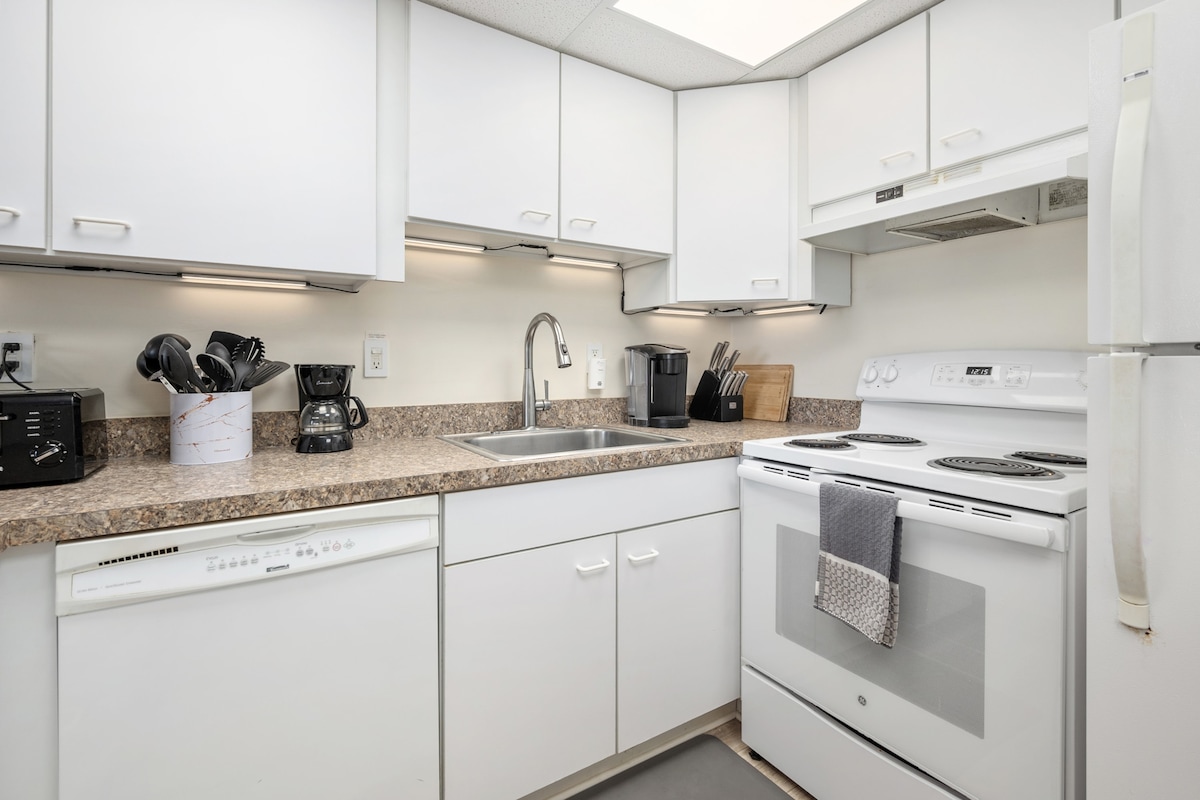 Detta unika boende har en egen stil. Vakna, häll upp din kopp kaffe och titta på soluppgången från din balkong vid havet. Stranden ligger några korta steg bort. Gångavstånd till många restauranger och butiker! Denna nyligen renoverade lägenhet med ett sovrum har en utomhusdusch, en hiss, fullt utrustat kök, ett bibliotek med böcker, 1,5 badrum, Wi-Fi, stor skärm smart-TV, sovrum tv, parkeringsplats, tvättmaskin/torktumlare och så mycket mer! Fräscha sängkläder, handdukar och toalettartiklar ingår.
