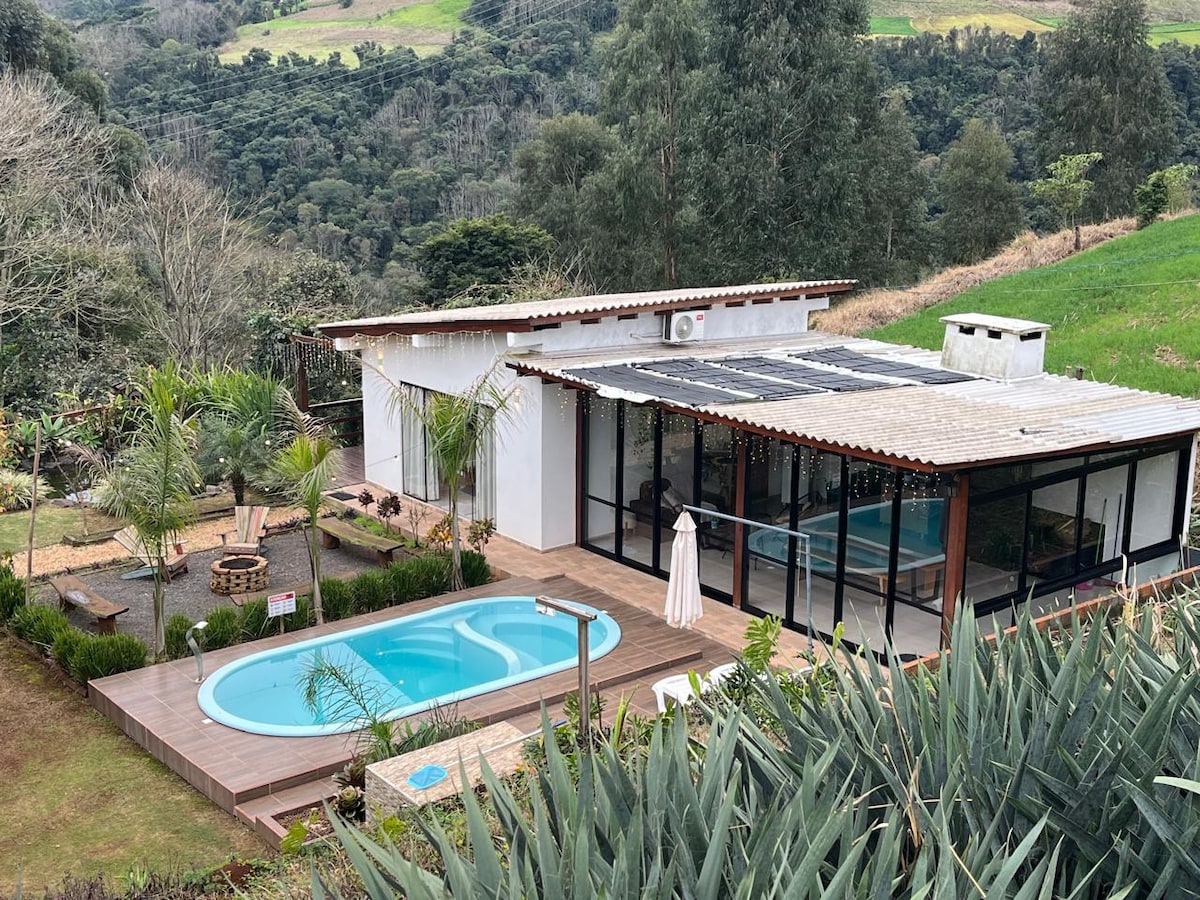 En sann fridfull fristad i interiören! Casa Raízes do Arvoredo är det perfekta stället att vila och ladda upp, omgivet av grönska. Med mysiga miljöer, välkomnande inredning och all nödvändig struktur är det det perfekta utrymmet för att samla familj och vänner, uppleva speciella stunder och njuta av lugnet på landsbygden utan att ge upp komfort. 💚