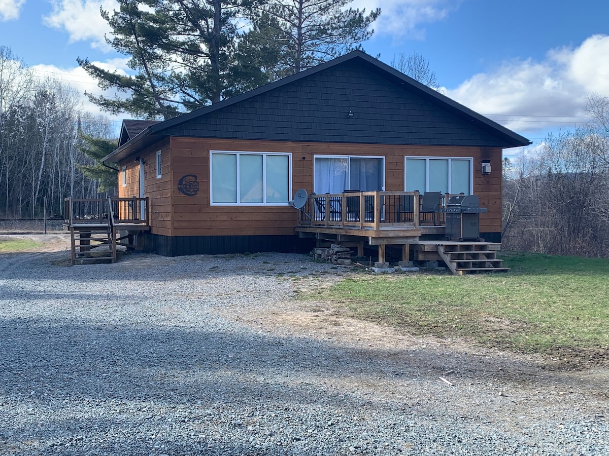 Our Cabin is a 2 bedrooms, 2 baths, laundry, screen in porch with hot tub, tv with internet in living room and bedrooms. Wood stove, a fully equipped kitchen. Master bedroom has a king size bed that can be split to make 2 twin extra long. The second bedroom can be set up as king bed or 2 twins with trundle bed. The cabin is ground level for accessibility by wheel chair and the bathrooms are wheel chair friendly. Searchmont Resort is 5 km away. Ontario Snow mobile trails go through Searchmont.