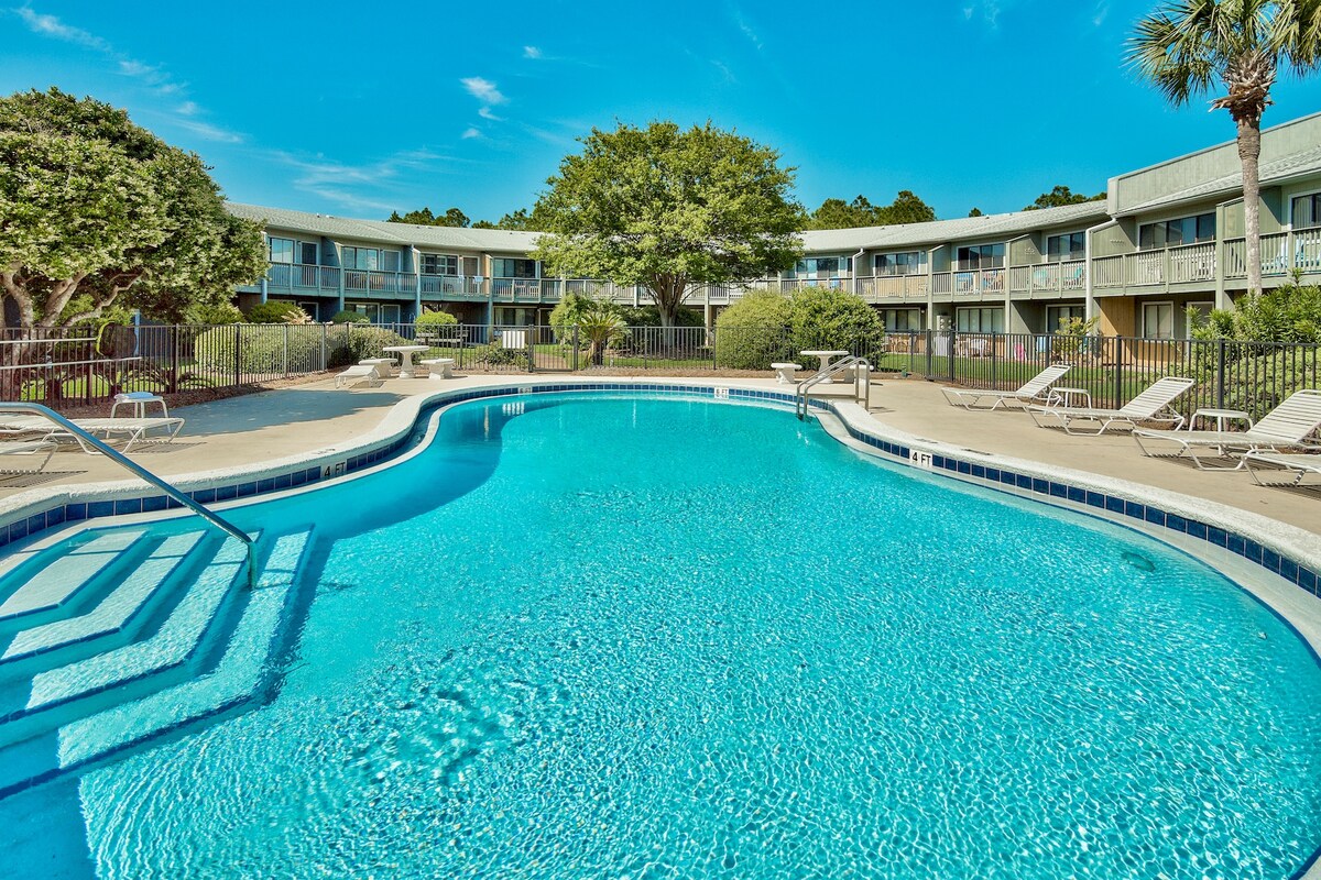 Hour Sunset ligger bara en kort promenad över 30A till den vackra sanden och smaragdstranden i Florida Gulf Coast! Från balkongen har du utsikt över ett välskött grönområde, nyrenoverad pool och till och med en glimt av Mexikanska golfen. Nyrenoverad för att skapa en bekväm känsla för gäster och oss själva att slappna av. Vi hoppas att du tar dig tid under din vistelse att njuta av solnedgångarnas skönhet — det är därför vi valde namnet!