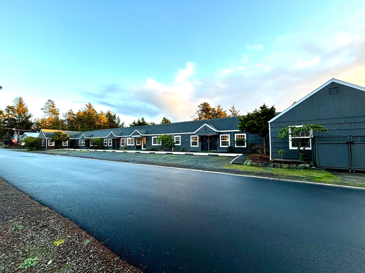 Renoverad studio belägen i centrala Manzanita, bara en kort promenad till stranden. Rymmer två gäster. Rummet uppdaterades 2020 med vackra breda plankgolv och ett helt renoverat badrum. Denna mysiga studio på Manzanita 's San Dune Inn är en underbar hemmabas för att utforska norra Oregon-kusten! Njut av en 55" platt-TV med kabelkanaler, gratis WiFi och ett oslagbart läge i centrum på bekvämt gångavstånd från stranden.