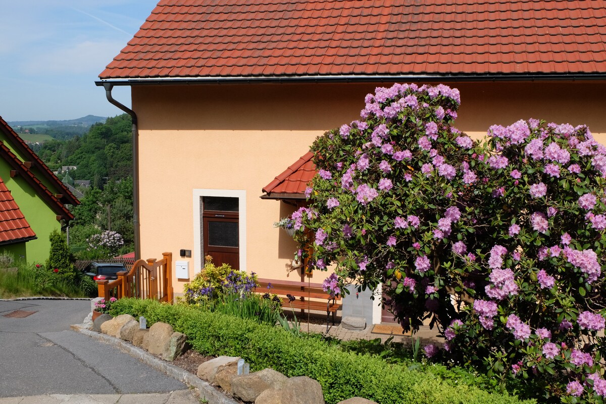 Vackert inredda lÀgenheter i ett enfamiljshus i ett lugnt, soligt lÀge i utkanten, bekvÀmt utgÄngslÀge för resor och vandringar i SÀchsische Schweiz, upphöjt lÀge pÄ en kulle. Ridstall ca 300 m bort, grillplats tillgÀnglig, parkering framför huset, vintersport möjlig, skidanlÀggning ca 2000 m bort, shoppingcenter 300 m bort, restaurang 2000 m, busshÄllplats och tÄg 100 m bort, Dresden 50 km frÄn Dresden.